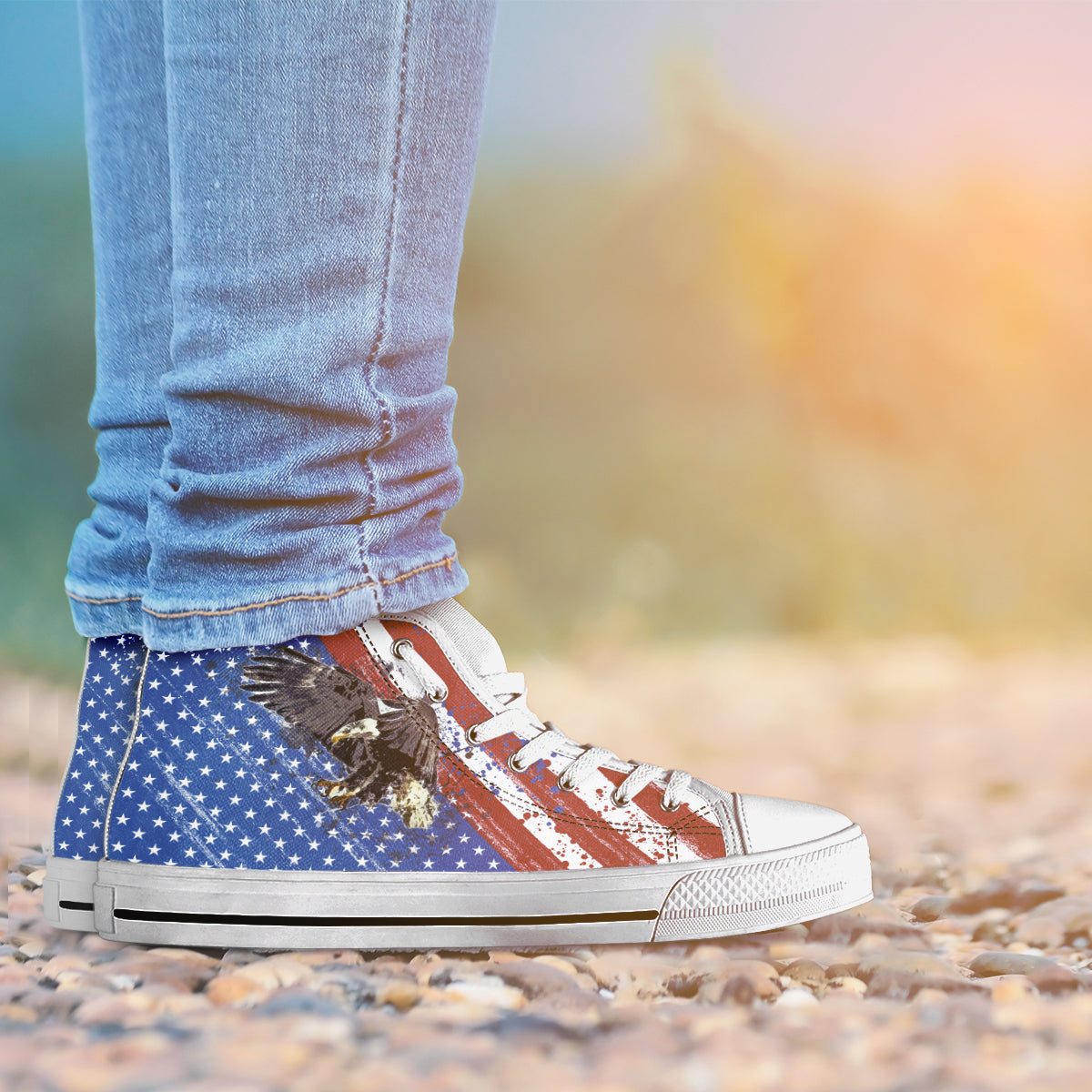 USA Flag & Eagle - Men's High Top Shoes